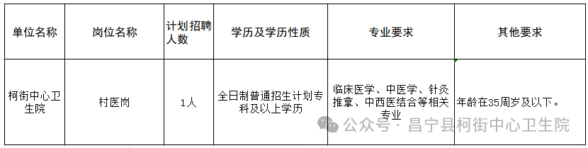 在“昌寧縣柯街中心衛(wèi)生院”微信公眾號發(fā)布招聘公告。