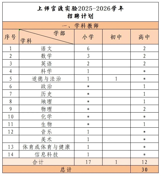 【教師招聘】2025新學年上師官渡實驗教師招聘啦!