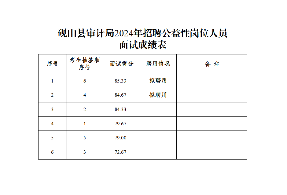 硯山縣審計局招聘公益性崗位人員面試成績公示