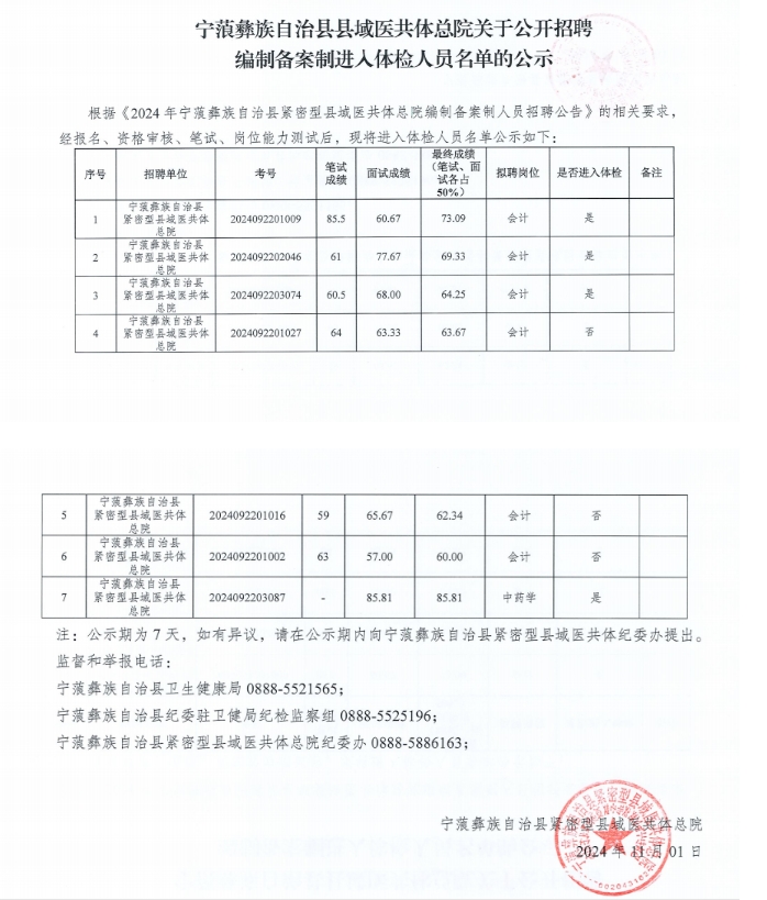 關(guān)于公開招聘編制備案制進(jìn)入體檢人員名單的公示