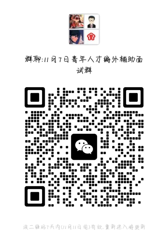 本通知發(fā)布后,為便于通知,請(qǐng)進(jìn)入面試的考生添加下方二維碼加群,加群后請(qǐng)將昵稱改為準(zhǔn)考證號(hào)后3位數(shù)字,例如:考生何某考號(hào)為24250100830,進(jìn)群后請(qǐng)將“我在群內(nèi)的昵稱”改為830,然后私信管理員發(fā)送姓名+電話核實(shí)身份,對(duì)于冒名頂替的人員將踢出群聊。