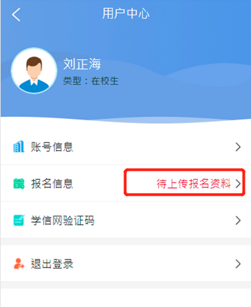 非在校生:非在校生不存在此操作界面。直接進入上傳資料頁根據(jù)界面提示上傳響應資料即可。