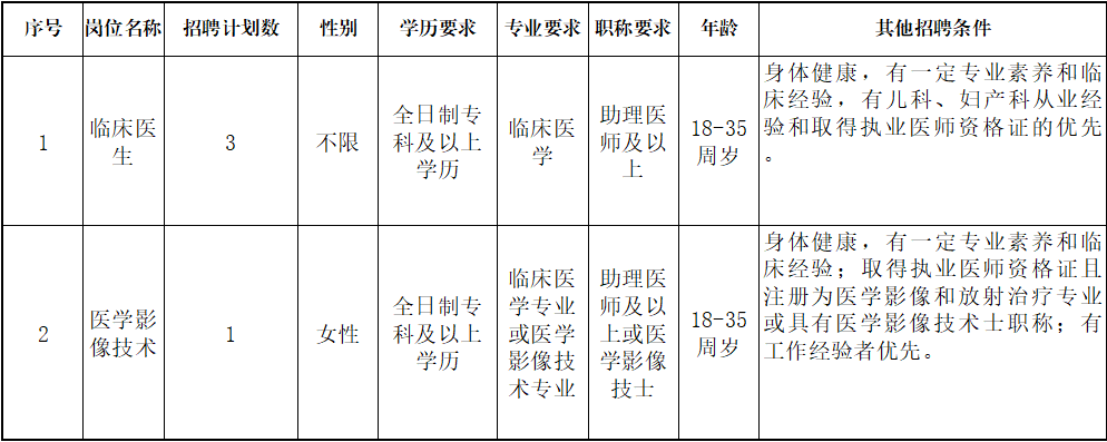 招聘臨床醫(yī)師3名,醫(yī)學(xué)影像技術(shù)人員1名。