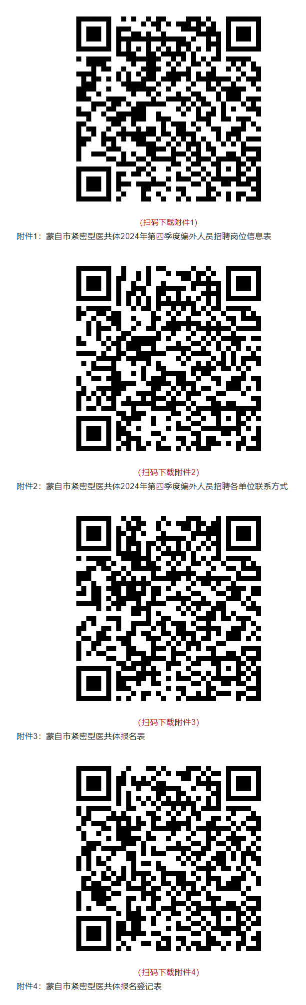 具體詳見《蒙自市緊密型醫(yī)共體2024年第4季度編外人員招聘崗位信息表》(附件1)。