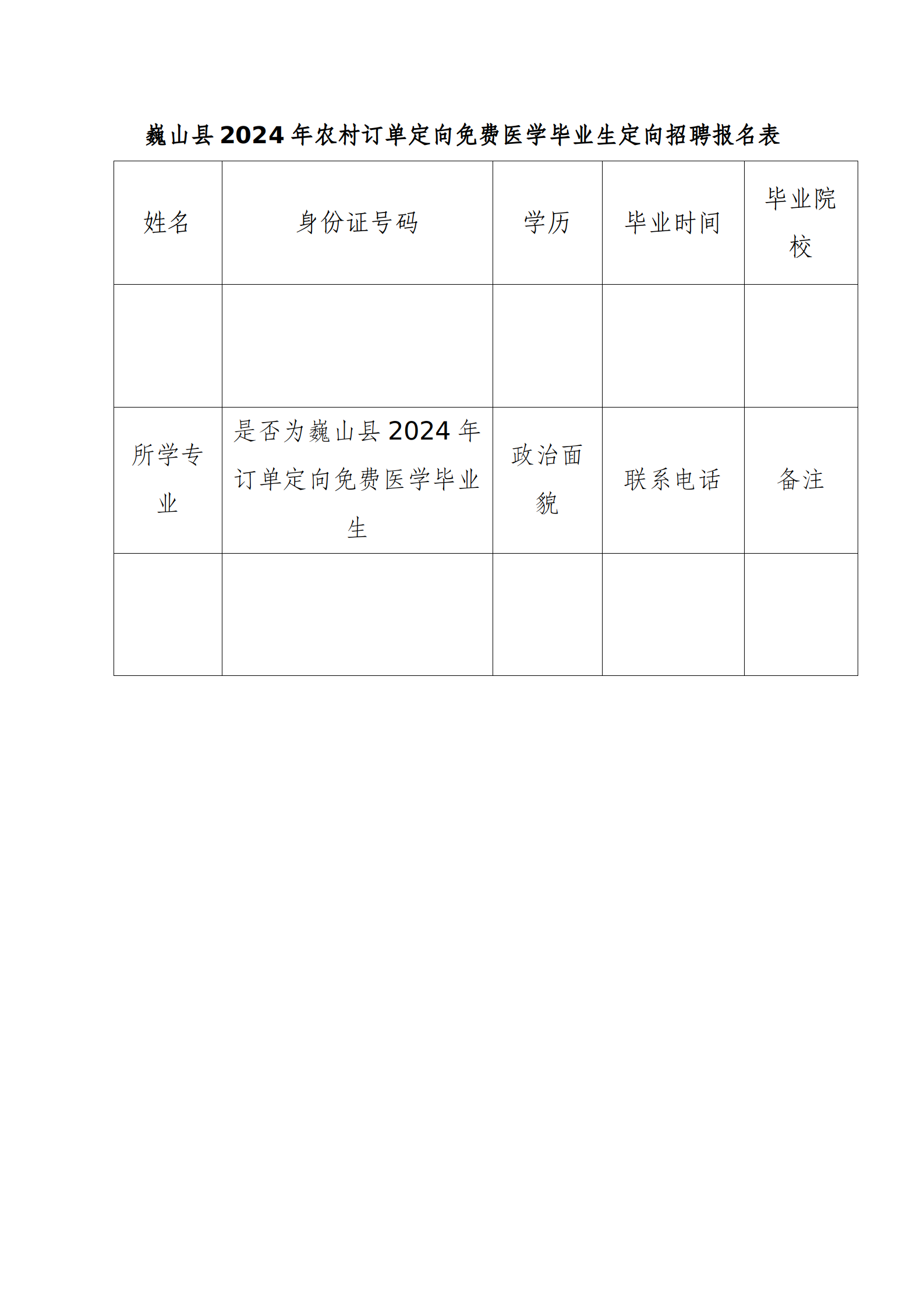 (一)招聘范圍:巍山縣2024年農(nóng)村訂單定向免費醫(yī)學畢業(yè)生。