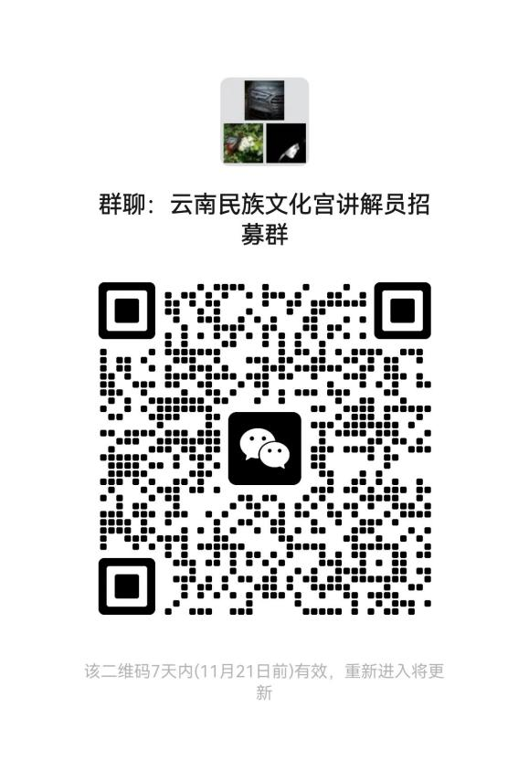 面試時間為2024年11月25日,報名后請掃描下方二維碼進云南民族文化宮講解員招募群等候具體通知。