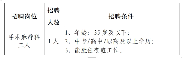 【招聘】手術(shù)麻醉科需招聘勞務(wù)派遣工作人員1名