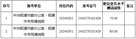 中共昭通市委辦公室2024年公開選調(diào)工作人員職業(yè)素質(zhì)測(cè)評(píng)成績(jī)公布