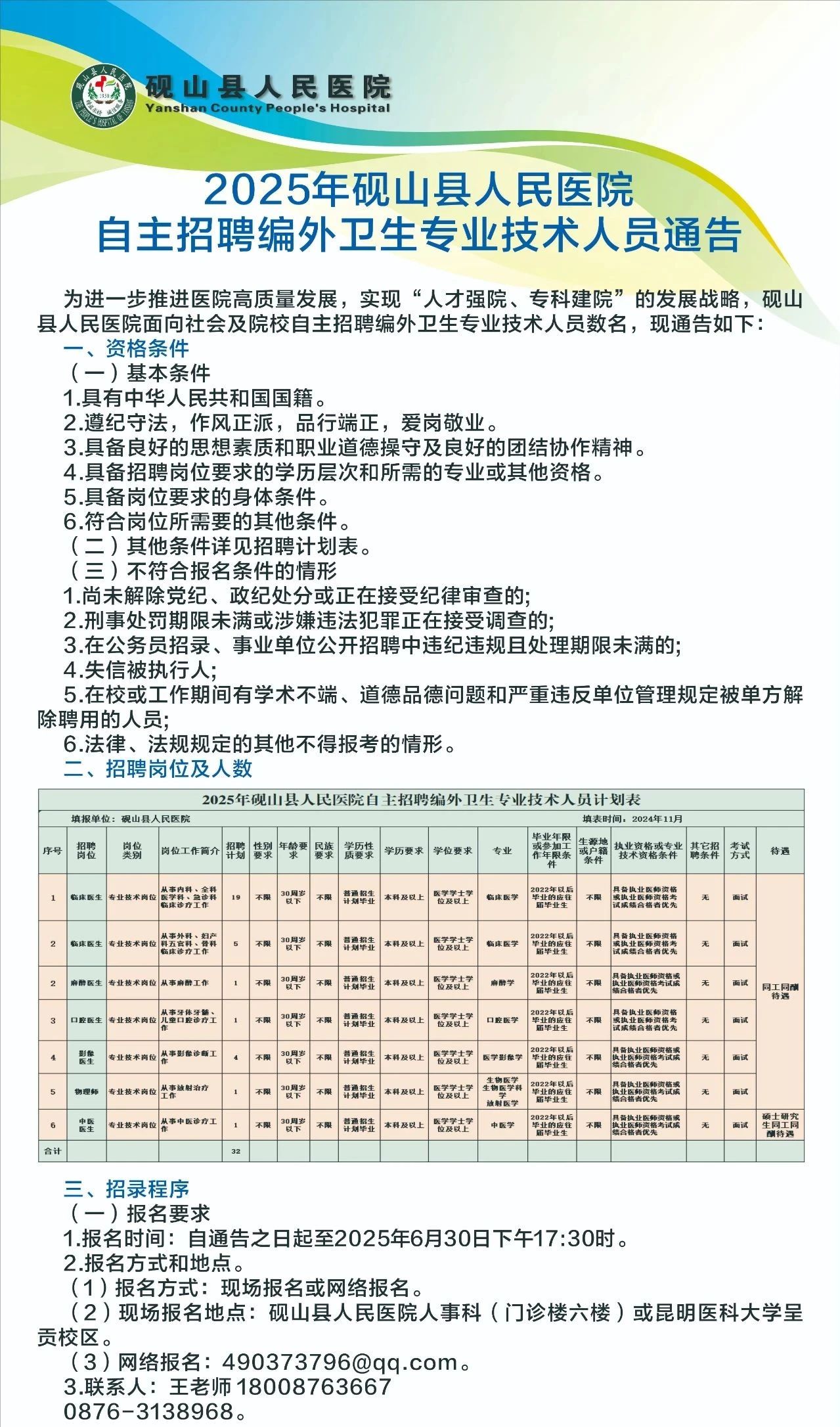 2025年硯山縣人民醫(yī)院自主招聘編外衛(wèi)生專(zhuān)業(yè)技術(shù)人員通告