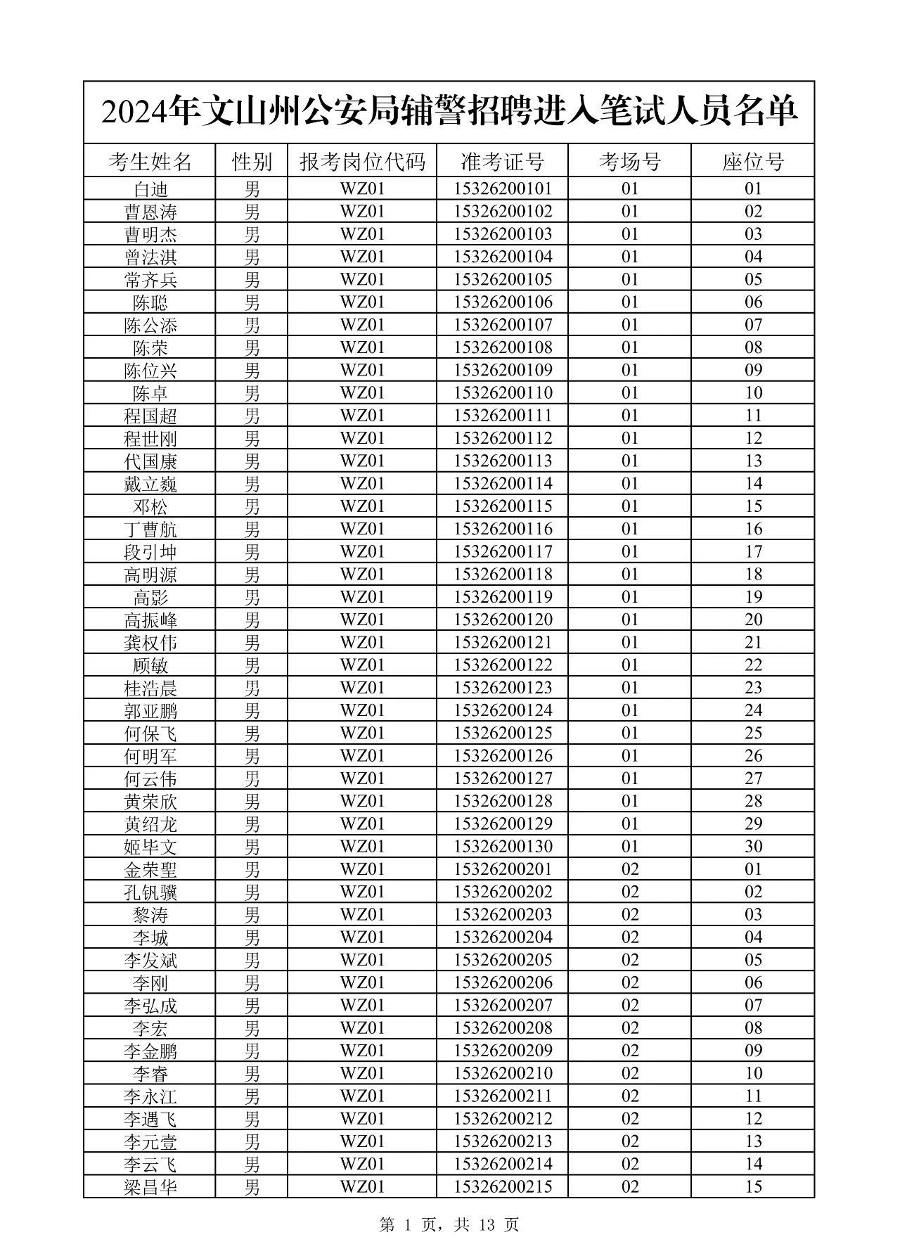 附件:1.2024年文山州公安局輔警招聘進(jìn)入筆試人員名單