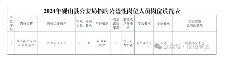 硯山縣公安局面向社會公開招聘公益性崗位人員公告