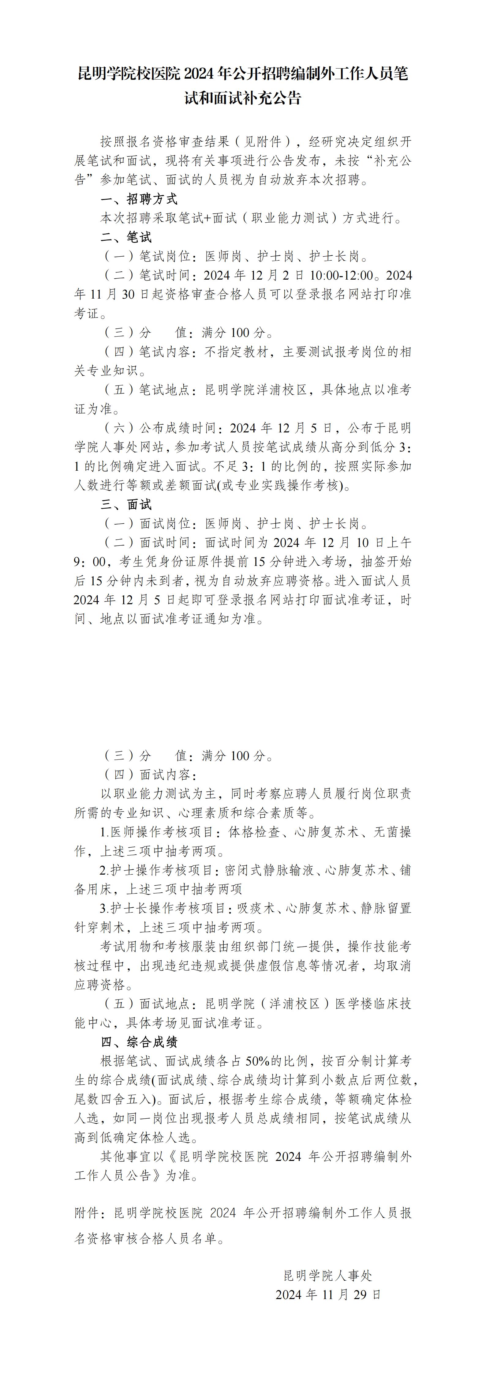 附件【附件:昆明學(xué)院校醫(yī)院2024年公開招聘編制外工作人員報名資格審核合格人員名單.pdf】
