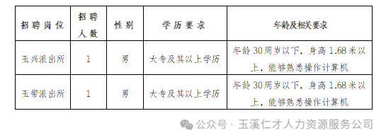根據(jù)工作需要,經(jīng)研究決定,面向社會(huì)公開(kāi)招聘玉溪市公安局紅塔分局警務(wù)輔助人員2名。現(xiàn)將有關(guān)事項(xiàng)公布如下: