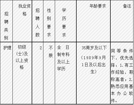 (一)崗位計劃(共計2名)招聘護理人員2名。