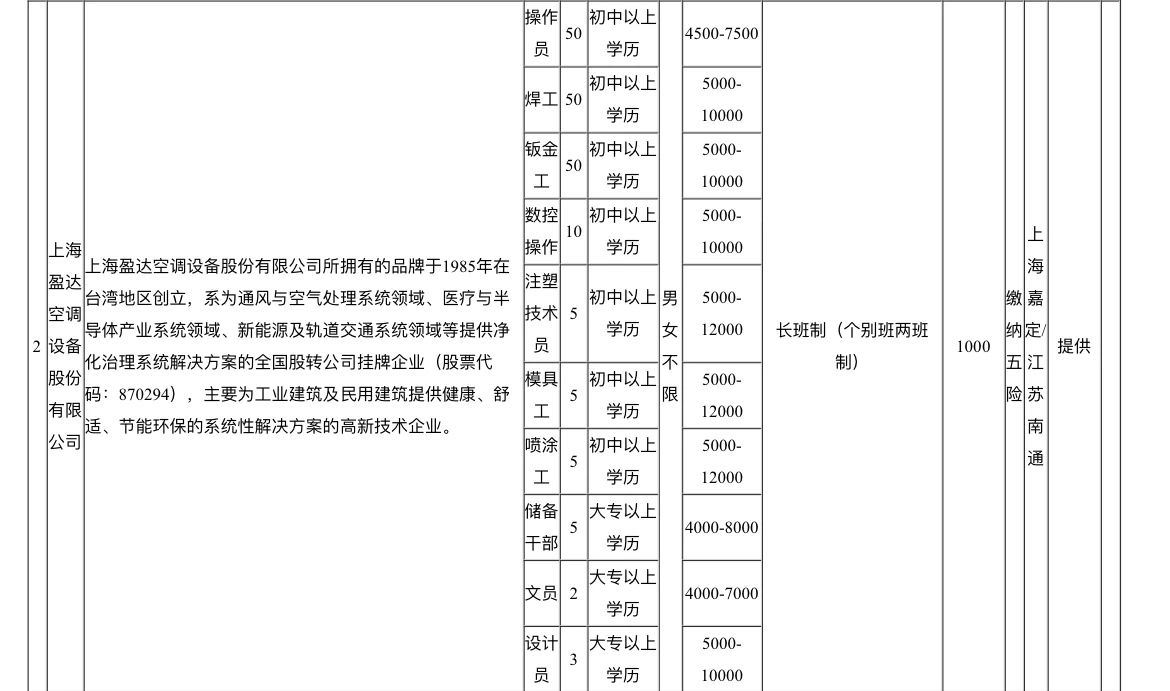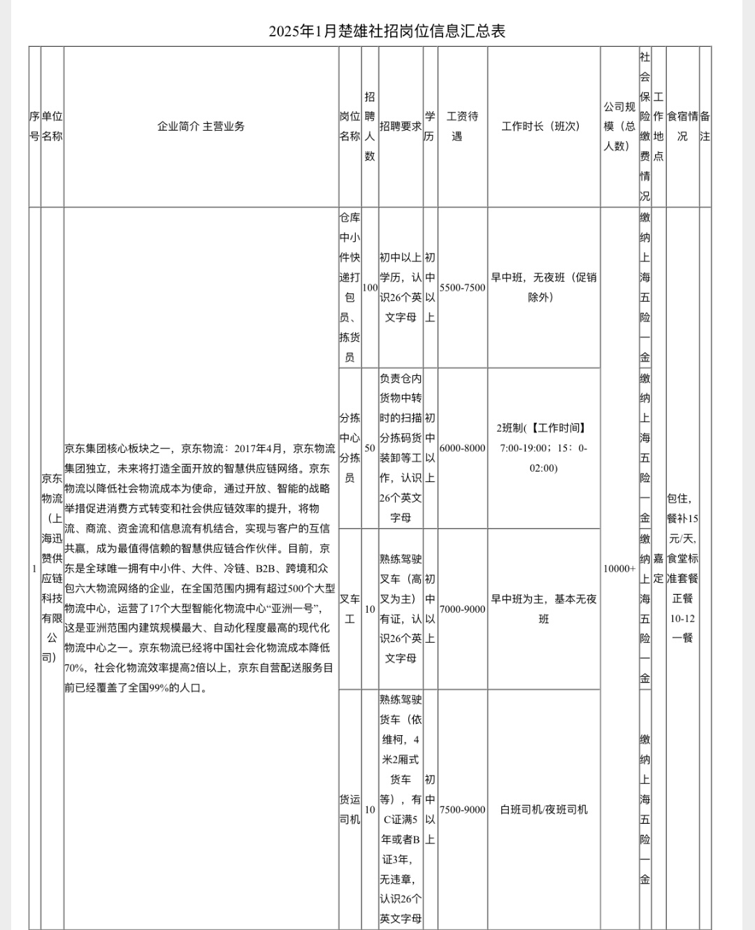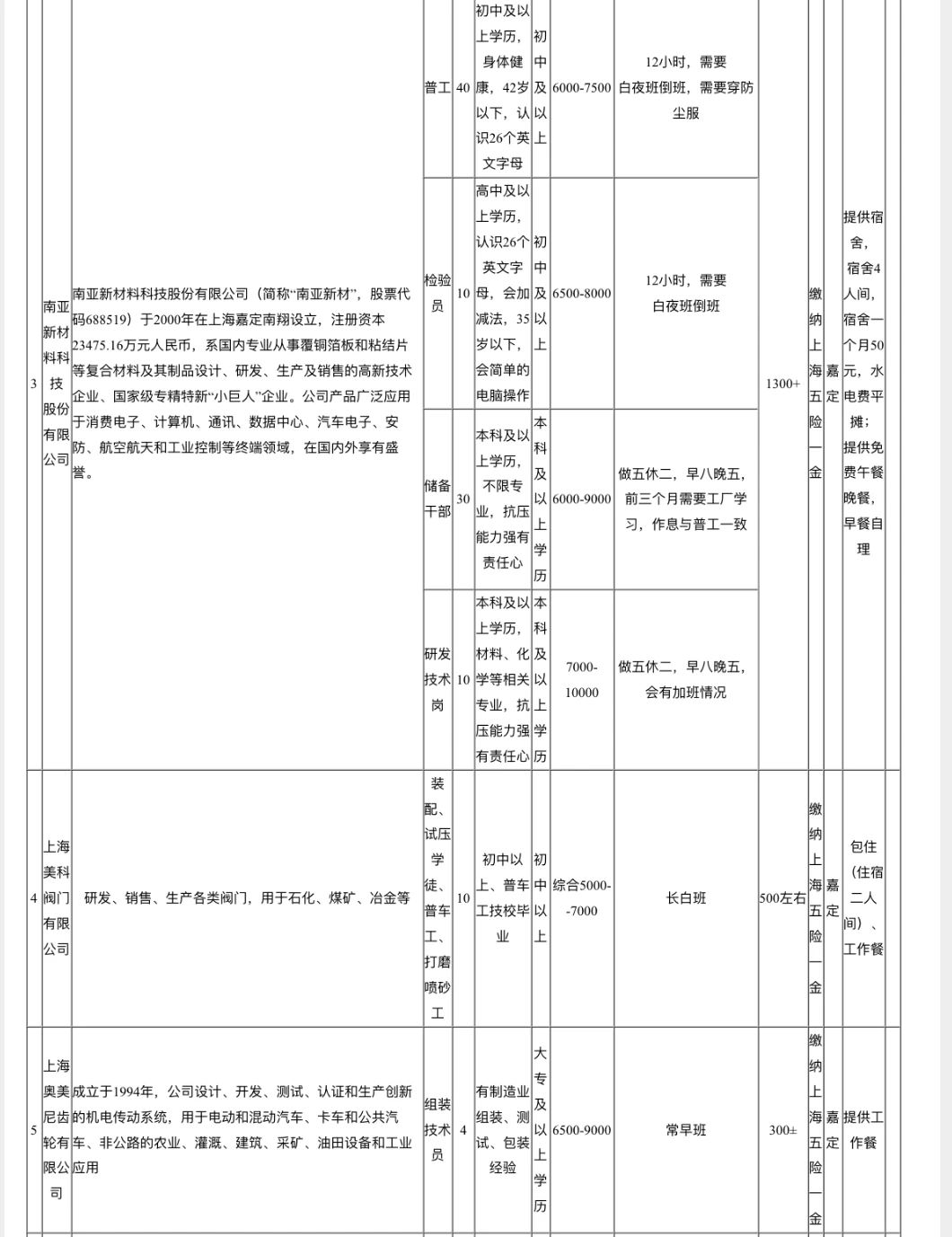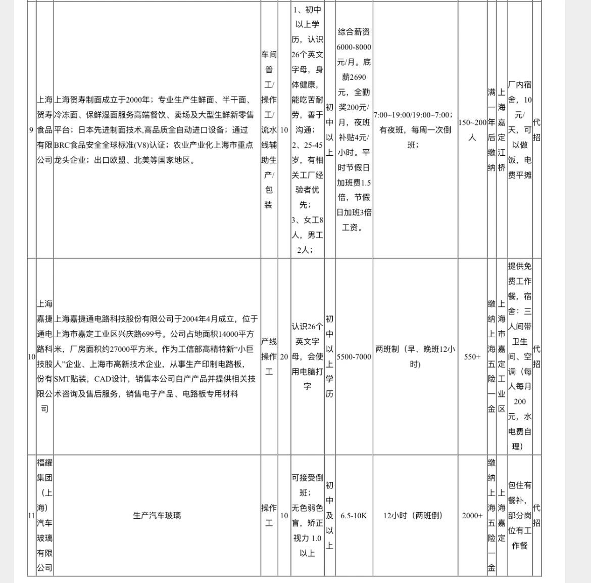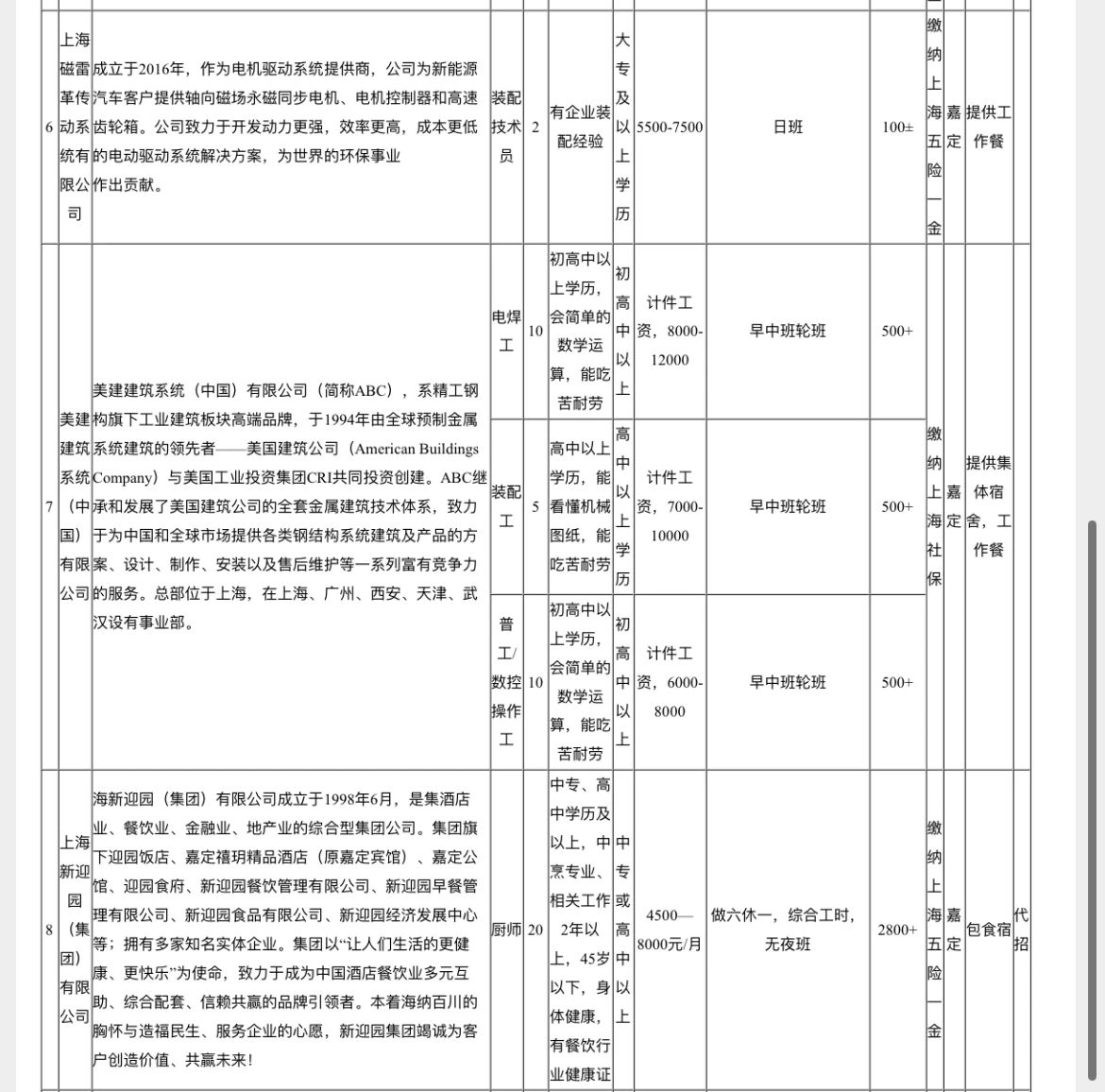 根據(jù)省州黨委、政府關(guān)于鞏固拓展脫貧攻堅成果同鄉(xiāng)村振興有效銜接工作部署安排及滬滇勞務(wù)協(xié)作工作要求,上海市嘉定區(qū)與本地企業(yè)對接收集整理了11家企業(yè)用工信息,提供就業(yè)崗位546個。歡迎姚安縣有就業(yè)意愿的勞動力到上海市務(wù)工,更多招聘崗位信息可以到姚安縣零工市場,姚安縣人社局一樓大廳就業(yè)窗口或者各鄉(xiāng)鎮(zhèn)黨群服務(wù)中心咨詢報名。