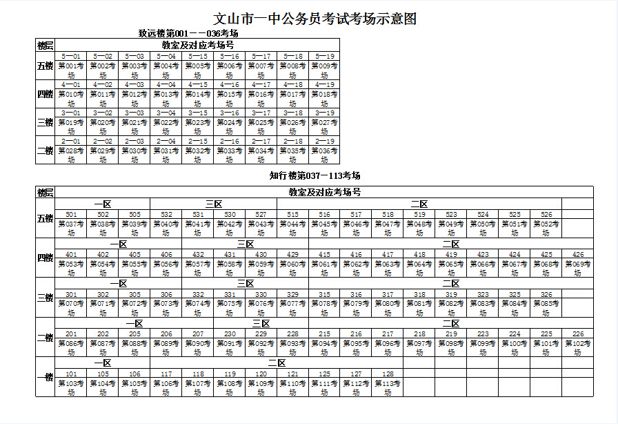 文山市一中2015年公務(wù)員考試考場示意圖