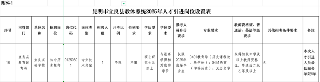 4.具備崗位所需要的其他條件,具體詳見《昆明市宜良縣教體系統(tǒng)2025年人才引進崗位設置表》(附件1)。