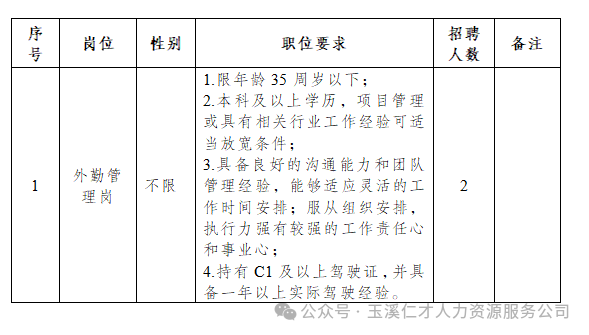 因公司發(fā)展需要,玉溪市紅塔區(qū)公路建設(shè)開發(fā)有限公司委托玉溪仁才人力資源服務(wù)有限責(zé)任公司面向社會公開招聘勞務(wù)派遣工作人員2名,現(xiàn)將有關(guān)事宜公告如下: