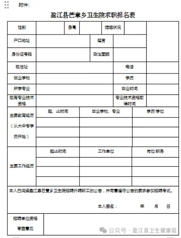 附件:盈江縣芒章鄉(xiāng)衛(wèi)生院求職報名表