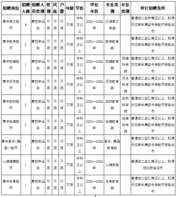 見習(xí)崗位:高中語文、數(shù)學(xué)、物理、生物、歷史、地理、體育、音樂(舞蹈)、心理健康。
