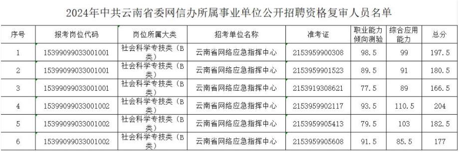 附件:2024年中共云南省委網(wǎng)信辦所屬事業(yè)單位公開招聘資格復(fù)審人員名單