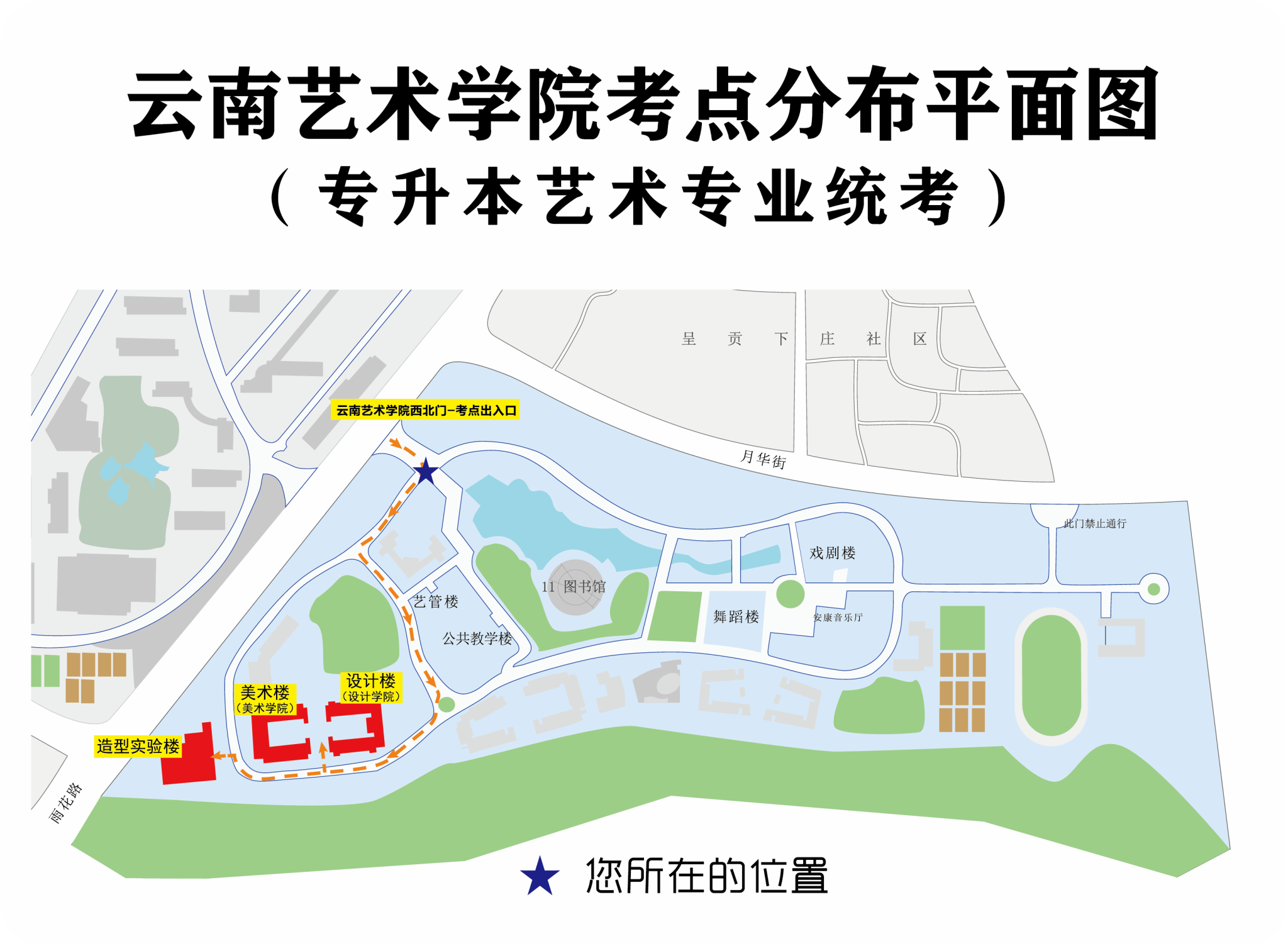 (三)考試前不安排考生查看考場,請(qǐng)考生提前熟悉云南藝術(shù)學(xué)院考點(diǎn)位置,規(guī)劃好赴考路線,注意出行安全。所有考生統(tǒng)一由云南藝術(shù)學(xué)院呈貢校區(qū)西北門入校,除考生本人外,其他送考人員及車輛不得進(jìn)入校園。