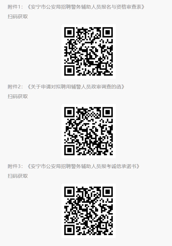 (1)報名表(附件1),下載并填寫《安寧市公安局招聘警務輔助人員報名與資格審查表》、身份證、畢業(yè)證、退伍證及相關(guān)資格證書復印件,報名時出示原件審核。