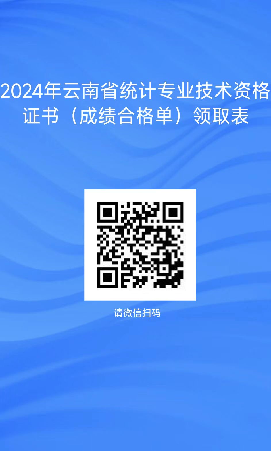 咨詢電話:0871-65108477,舉報(bào)電話:0871-65108424。證書(shū)領(lǐng)取方式分為郵寄到付領(lǐng)取和現(xiàn)場(chǎng)領(lǐng)取兩種,即日起至2024年12月31日,請(qǐng)合格考生微信掃碼填寫(xiě)《2024年云南省統(tǒng)計(jì)專業(yè)技術(shù)資格證書(shū)(成績(jī)合格單)領(lǐng)取表》。