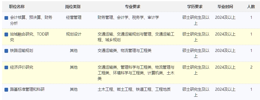 本次計劃招聘6人,具體崗位及要求詳見《中國鐵路經(jīng)濟規(guī)劃研究院有限公司2025年普通高校畢業(yè)生招聘計劃》。