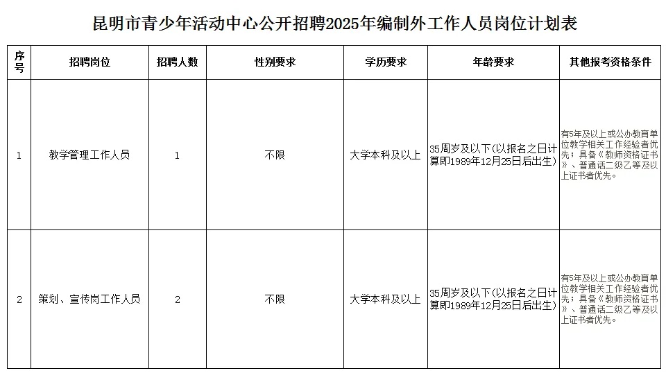 此次面向社會公開招聘昆明市盤龍區(qū)青少年活動中心教務(wù)科工作人員3名(含教務(wù)員1名;活動策劃1名;品宣人員1名)。