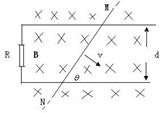 2. 如圖所示,平行導(dǎo)軌間距為d=1m ,一端跨接一個電阻。勻強磁場B=0.5T,方向垂直于平行金屬導(dǎo)軌所在平面。一根金屬棒與導(dǎo)軌成