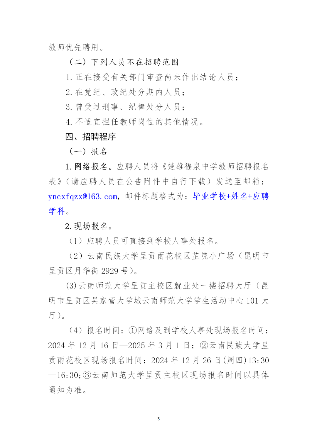 楚雄福泉中學(xué)2025年專任教師招聘公告