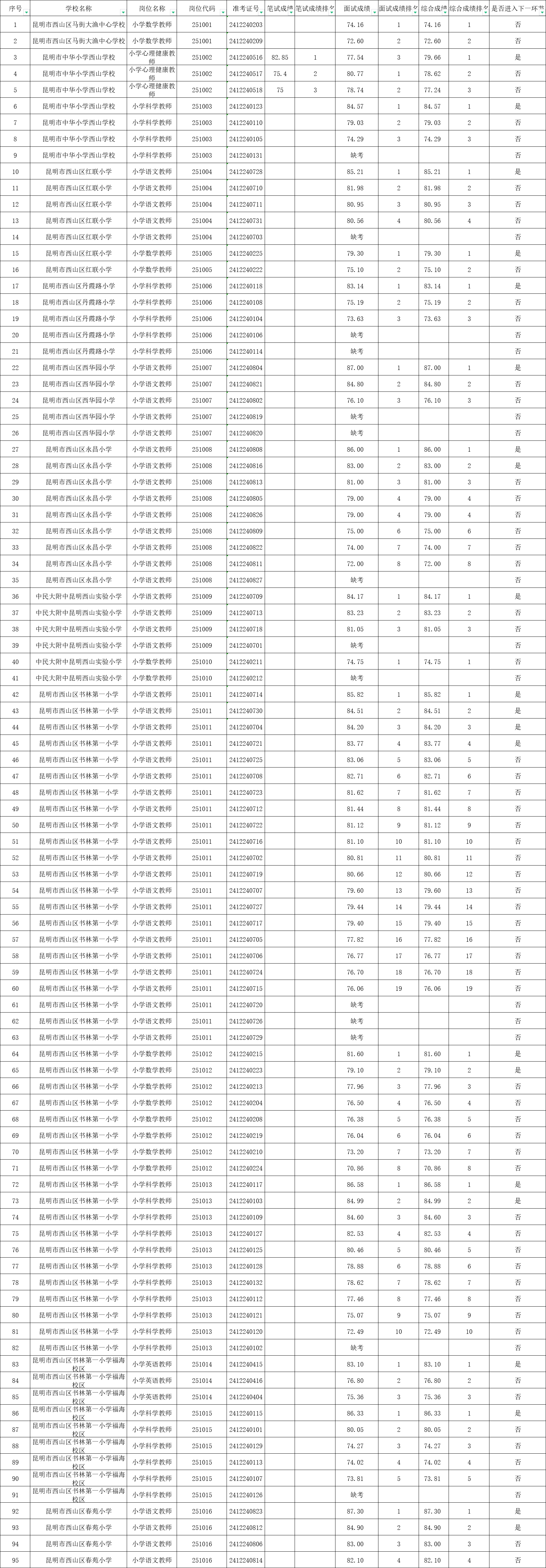 昆明市西山區(qū)教育體育局2025年專項人才引進(jìn)綜合成績公示