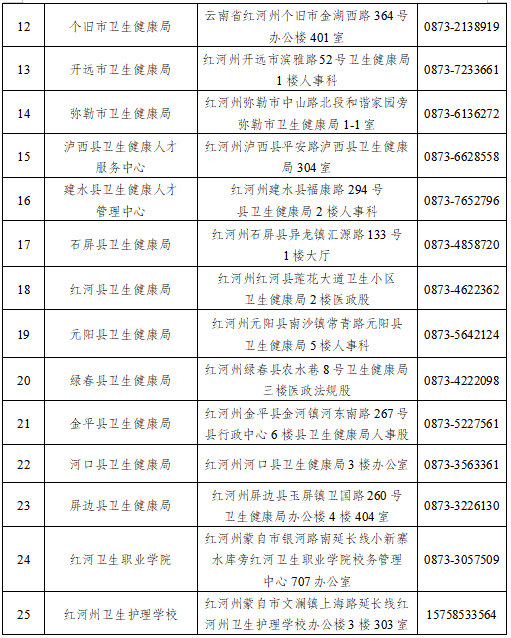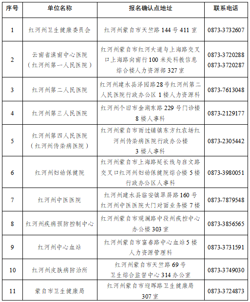 六、紅河州各報(bào)名確認(rèn)點(diǎn)地址及咨詢電話