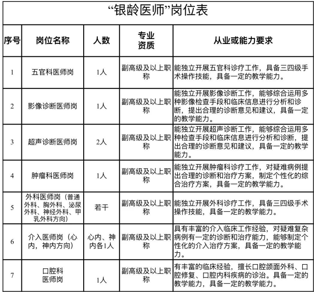 為深入貫徹落實《云南省人民政府辦公廳關(guān)于印發(fā)〈云南省“銀齡醫(yī)師”行動計劃(試行)〉的通知》(云政辦發(fā)〔2024〕50號)、《普洱市人民政府辦公室關(guān)于印發(fā)普洱市貫徹落實云南省“銀齡醫(yī)師”行動計劃工作措施的通知》(普政辦發(fā)〔2024〕74號)文件精神,根據(jù)醫(yī)院發(fā)展需要,吸引一批退休醫(yī)療衛(wèi)生人才到我院服務(wù),緩解醫(yī)院高端人才少、高層次人才緊缺和基層人才不足等問題,充分發(fā)揮退休醫(yī)療衛(wèi)生人才有益補充、示范引領(lǐng)作用,面向社會招聘退休醫(yī)療衛(wèi)生人才,現(xiàn)將有關(guān)事項公告如下: