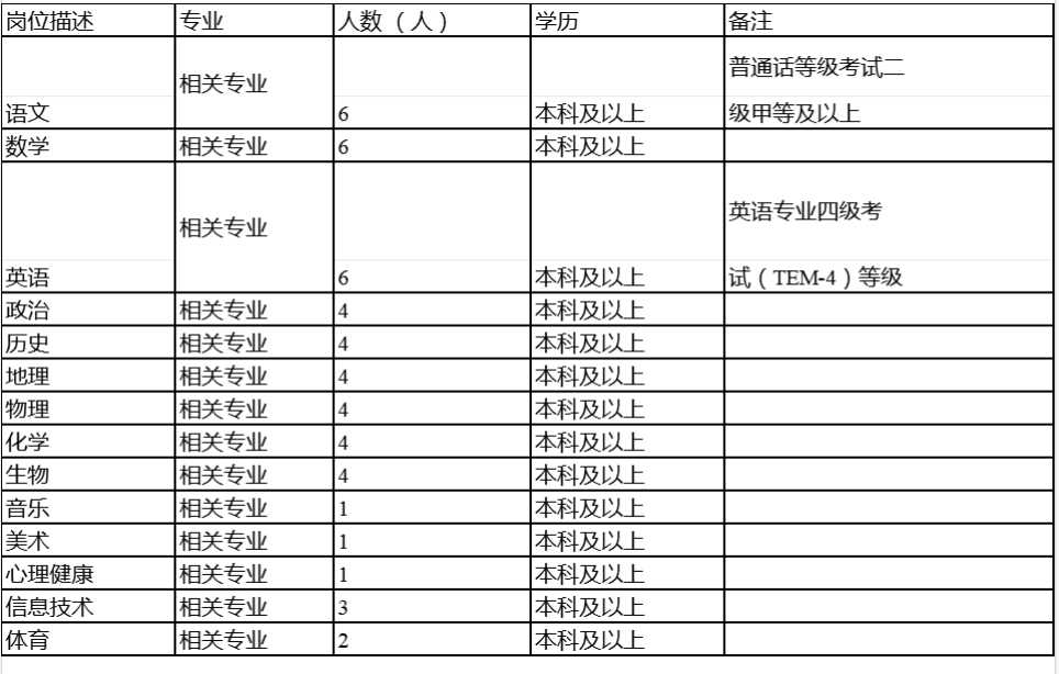 3.具有應聘高中崗位所需的學歷、專業(yè)和高級中學教師資格證,普通話等級二級乙等及以上。