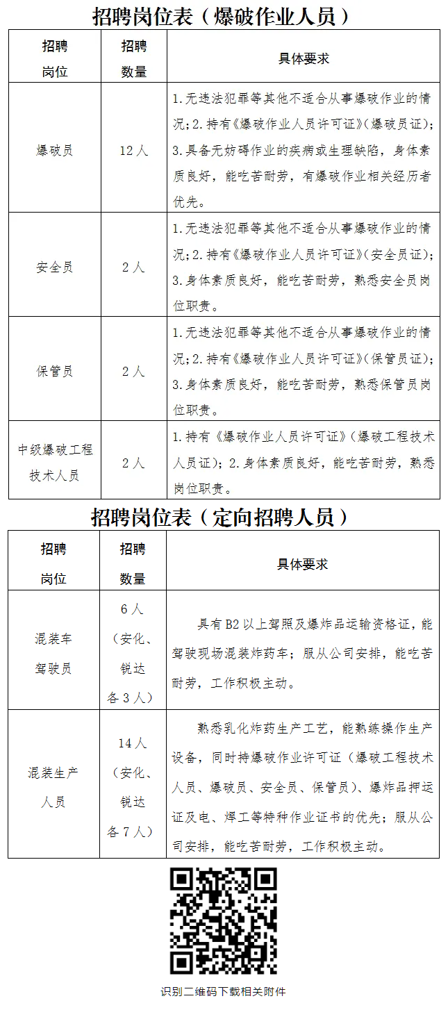 3.定向招聘人員工作地點(diǎn)隨爆破業(yè)務(wù)開(kāi)展情況動(dòng)態(tài)調(diào)整。