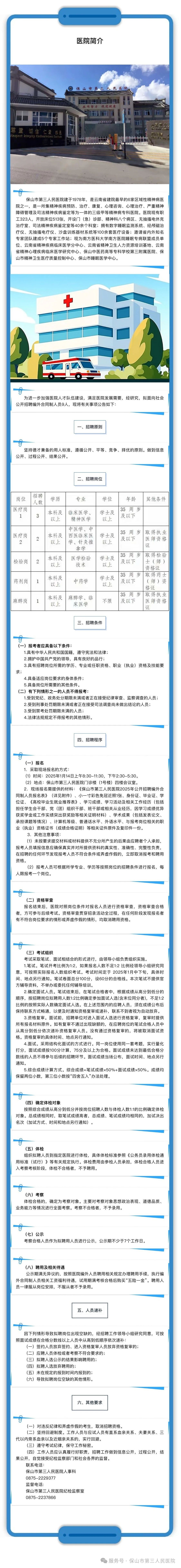 保山市第三人民醫(yī)院2025年公開招聘編外合同制人員公告