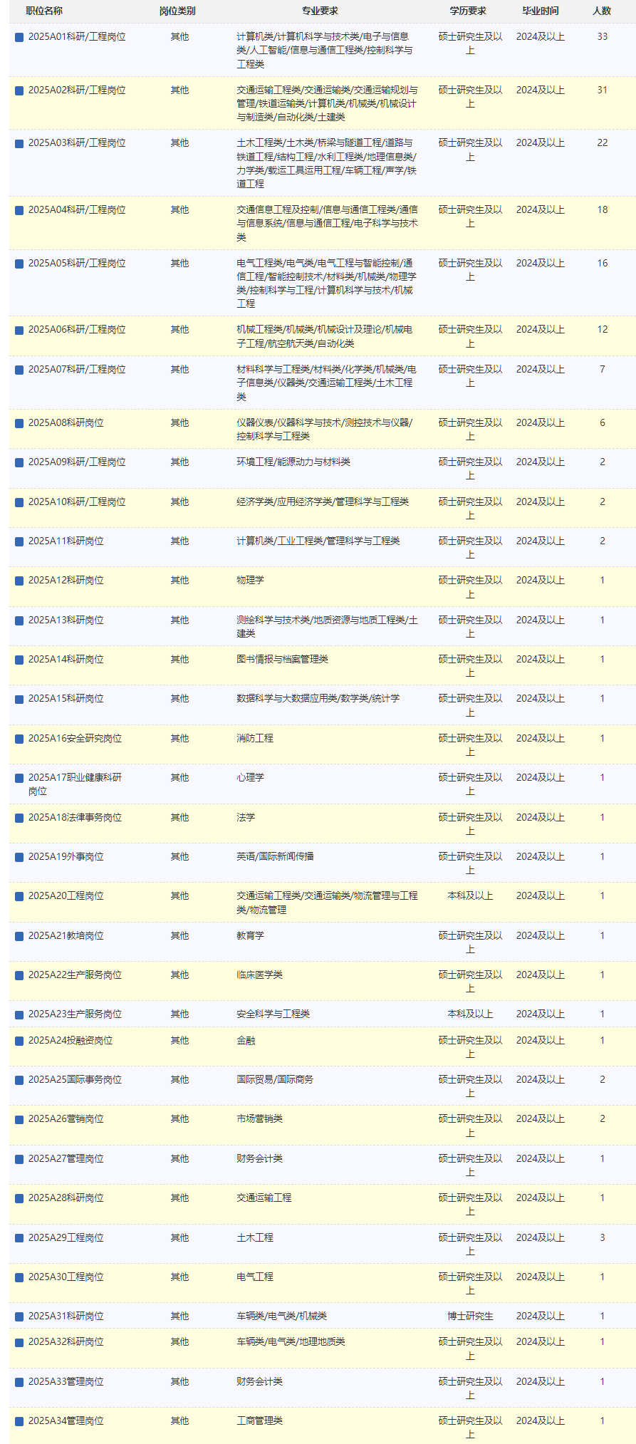 本次計劃招聘高校畢業(yè)生178人,具體崗位及要求詳見《中國鐵道科學研究院集團有限公司2025年招聘高校畢業(yè)生需求信息表》。