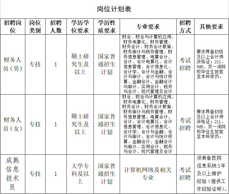 招聘編外合同制財務(wù)人員、成熟信息技術(shù)員公告