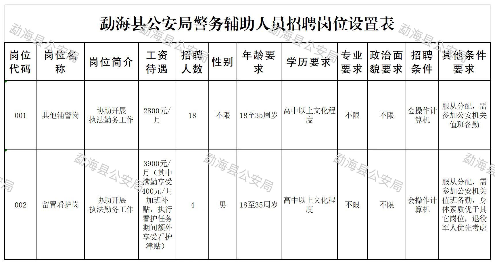 根據(jù)工作需要,勐??h公安局現(xiàn)面向社會(huì)公開招聘警務(wù)輔助人員(以下簡(jiǎn)稱輔警),有關(guān)事項(xiàng)公告如下: