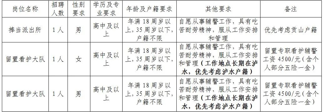貢山縣公安局因工作需要,特面向社會(huì)公開招聘3名警務(wù)輔助人員,從事警務(wù)輔助工作。警務(wù)輔助人員不具有公務(wù)員(人民警察)身份,不納入編制管理,不行使人民警察職權(quán)。