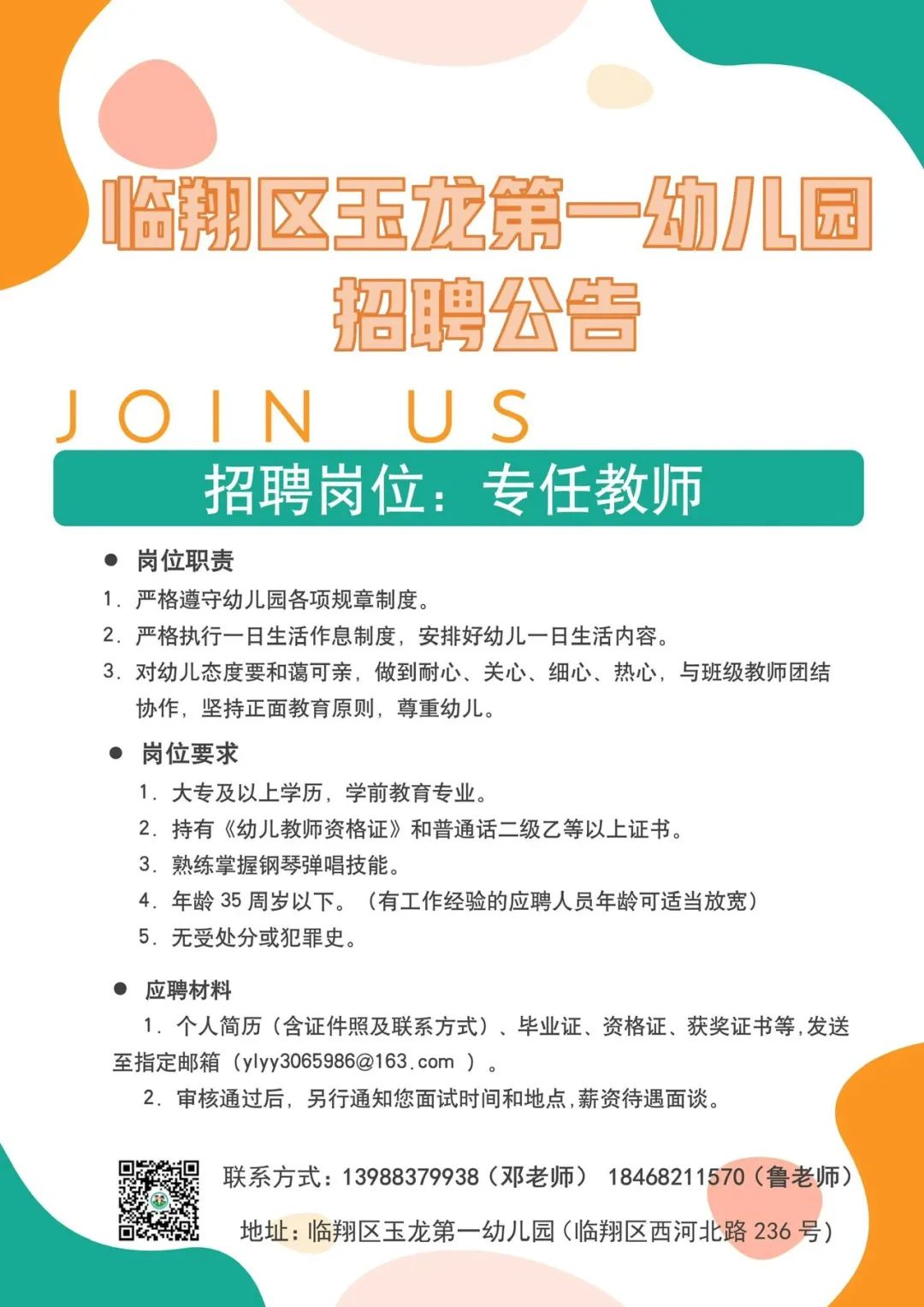 臨翔區(qū)玉龍第一幼兒園2025年春季學(xué)期招聘專任教師公告