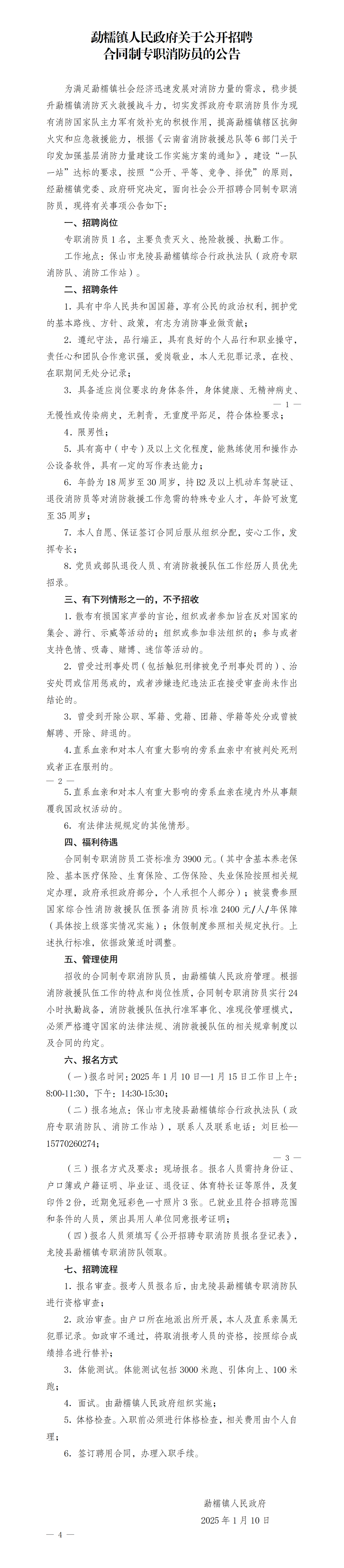 勐糯鎮(zhèn)人民政府關(guān)于公開招聘合同制專職消防員的公告