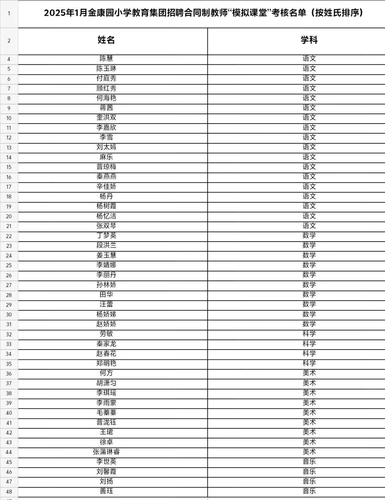 (三)“模擬課堂”考核名單詳見《昆明市盤龍區(qū)金康園小學(xué)教育集團(tuán)2025年招聘合同制教師“模擬課堂”考核人員名單》。(附件1)