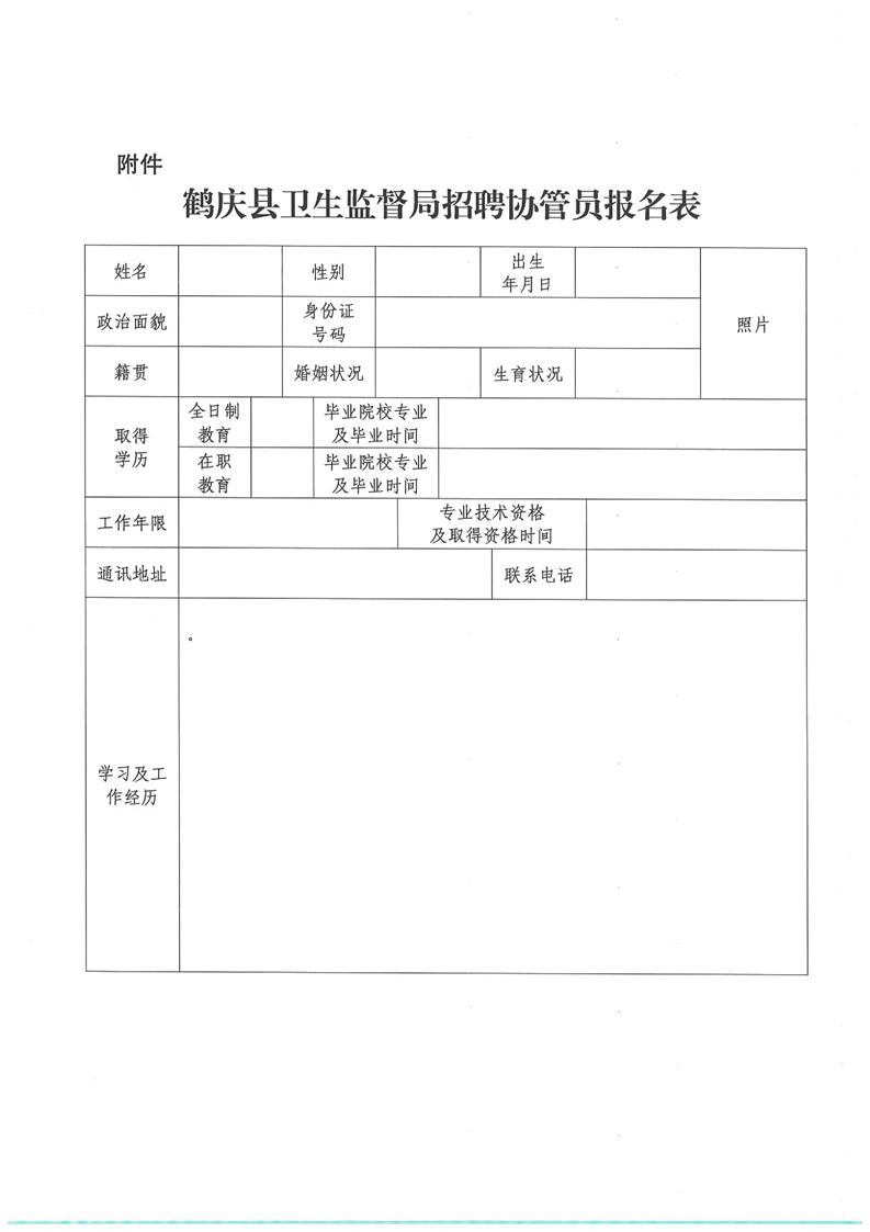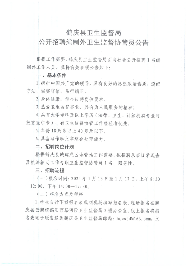 鶴慶縣衛(wèi)生監(jiān)督局協(xié)管招聘公告