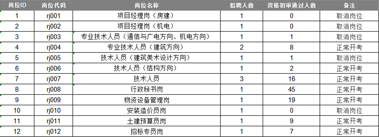 根據(jù)《云南睿建工程有限公司2024年面向社會公開招聘工作人員公告》,經(jīng)資格初審后,報(bào)招聘工作領(lǐng)導(dǎo)小組研究討論,將開考比例調(diào)整至1:2,仍未未達(dá)到開考比例的,對該崗位招聘工作予以取消,其他崗位正常進(jìn)行,具體情況如下: