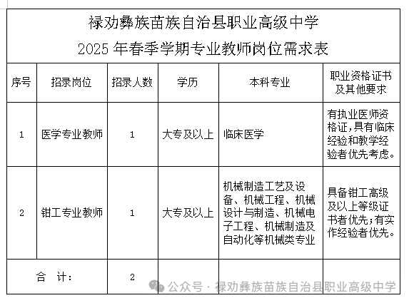 招聘公告通過縣教體局、祿勸職業(yè)高級(jí)中學(xué)公眾號(hào)發(fā)布。自發(fā)布之日開始報(bào)名。