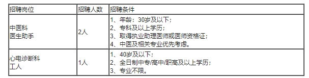 【招聘】中醫(yī)科、心電診斷科需招聘勞務派遣工作人員3名