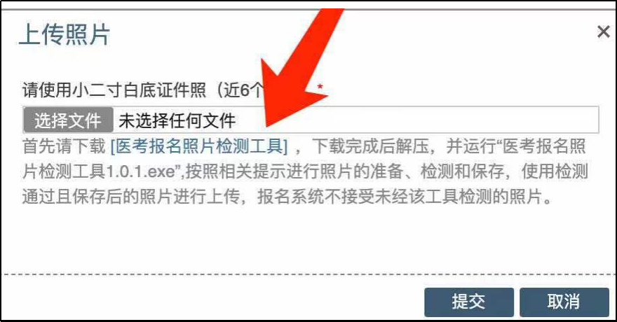 (一)考生在網(wǎng)報系統(tǒng)上傳個人小二寸白底證件照時,應(yīng)按照系統(tǒng)提示內(nèi)容下載并運行“醫(yī)考報名照片檢測工具”,網(wǎng)報系統(tǒng)只接受經(jīng)該工具檢測通過且保存后的照片進行上傳。